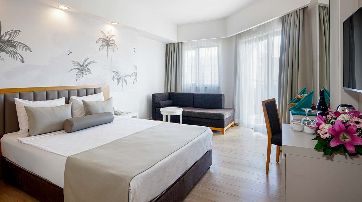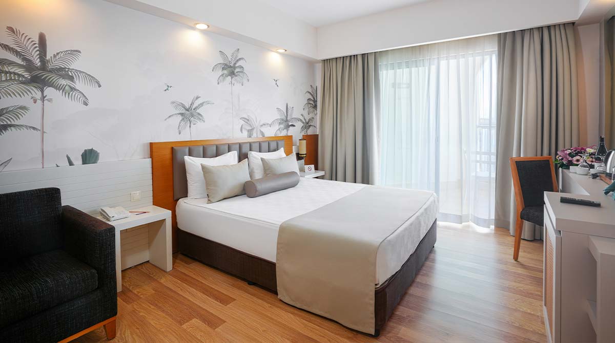 Unser 26 m² großes Behindertenzimmer bietet einen komfortablen Wohnraum, der mit Blick auf Barrierefreiheit gestaltet wurde. Dieses Zimmer, in dem jedes Detail den Bedürfnissen unserer Gäste mit Behinderungen angepasst wurde, bietet mit seinem großen Raum und praktischen Layout ein komfortables Unterkunftserlebnis.
